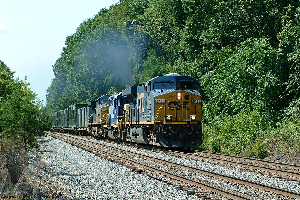 Description: CW60AC 642 leads trailerjet Q174 eastbound, under I-95 and up the hill out of Bayview. |